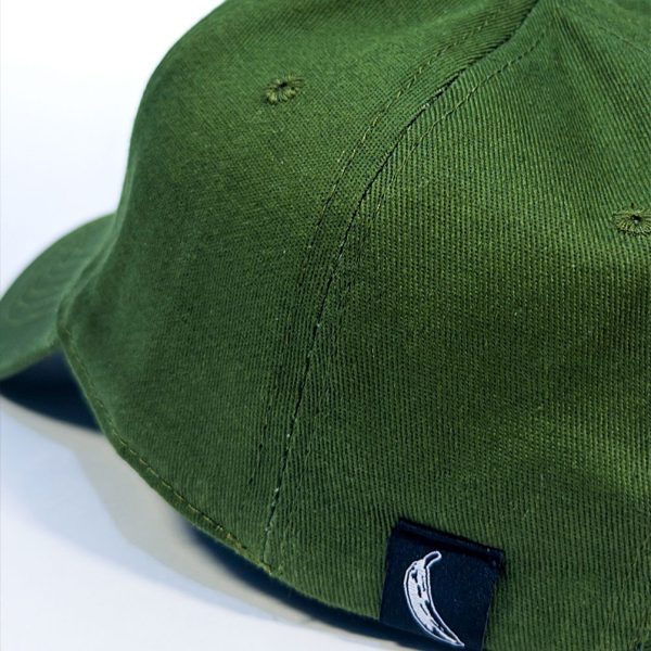 Gorra tipo béisbol con parte superior blanda, visera curva y cierre ajustable.